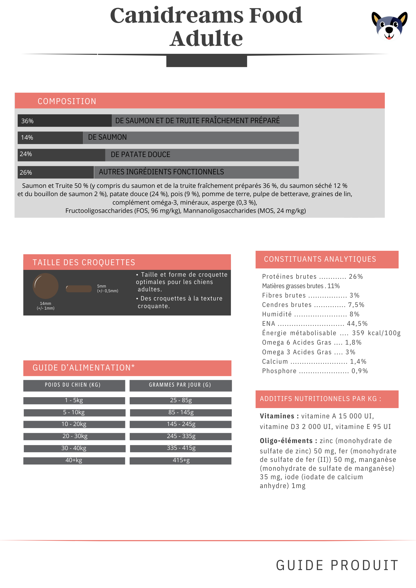 🥗 Si vous ne connaissez pas la quantité nécessaire à donner à votre chien chaque jour, notre guide d'alimentation est fait pour vous !